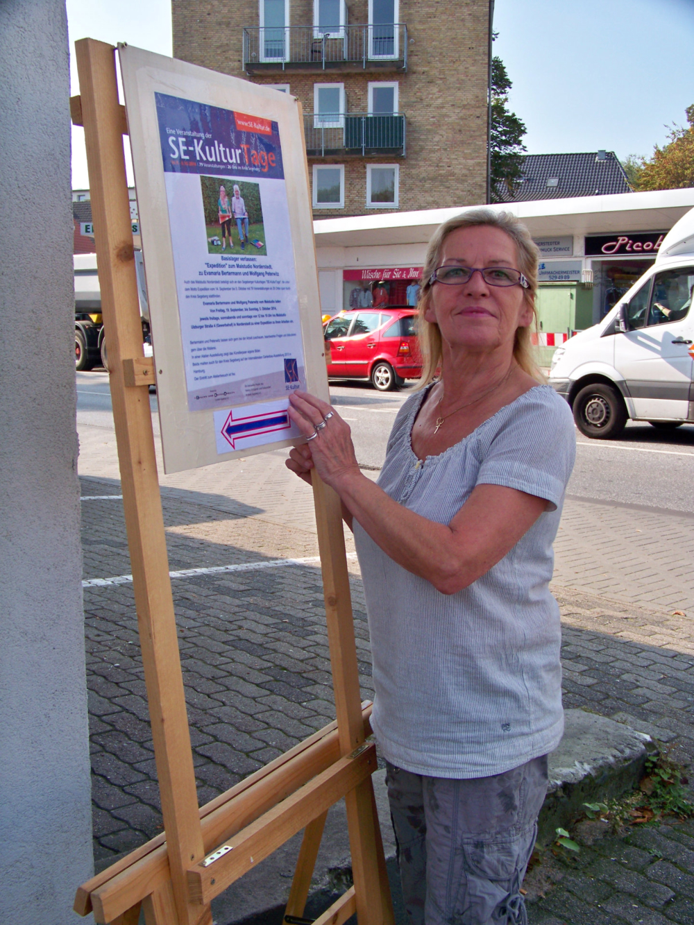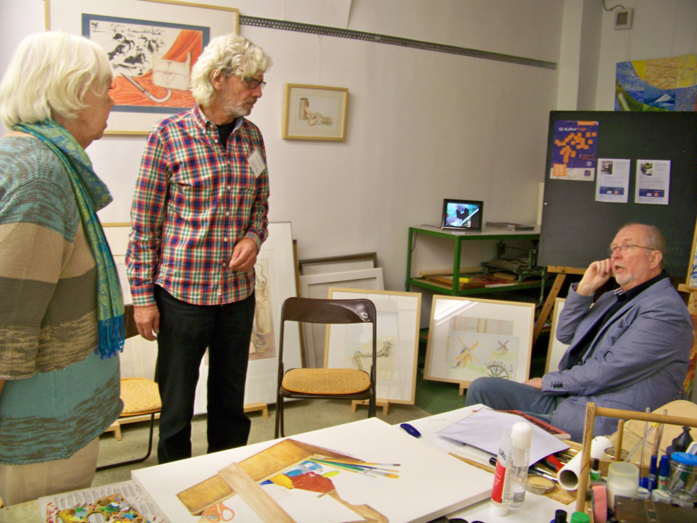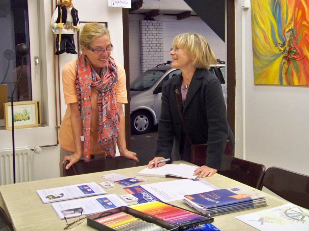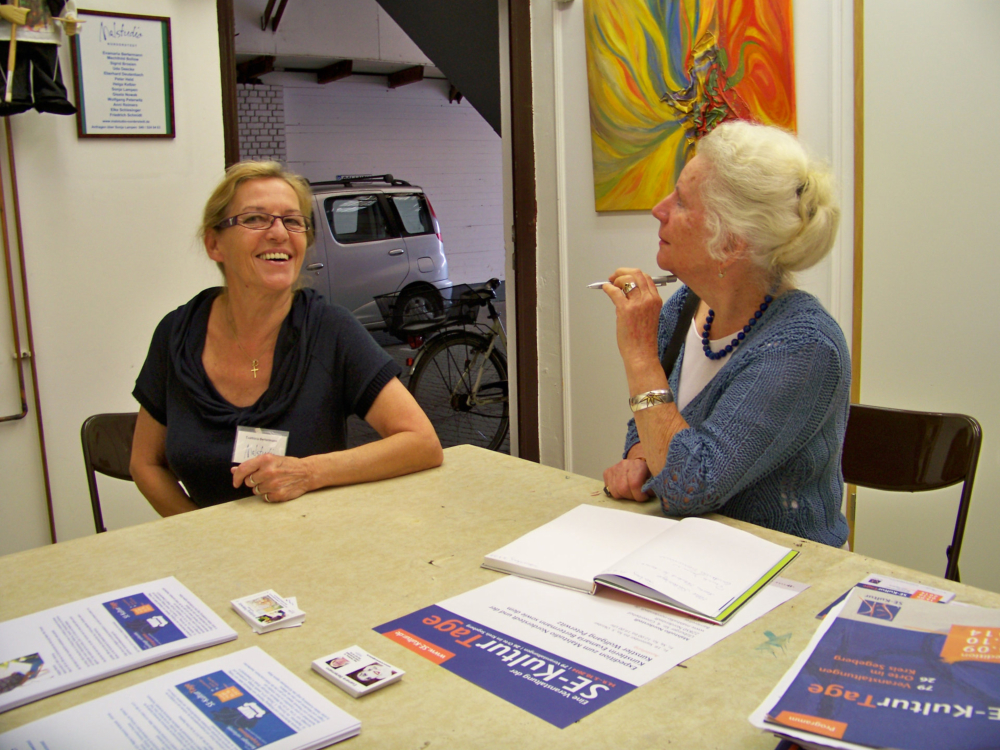 Im Gespräch mit unserer ersten Besucherin, Kerstin Fähndrich vom Team “SE-KulturTage”